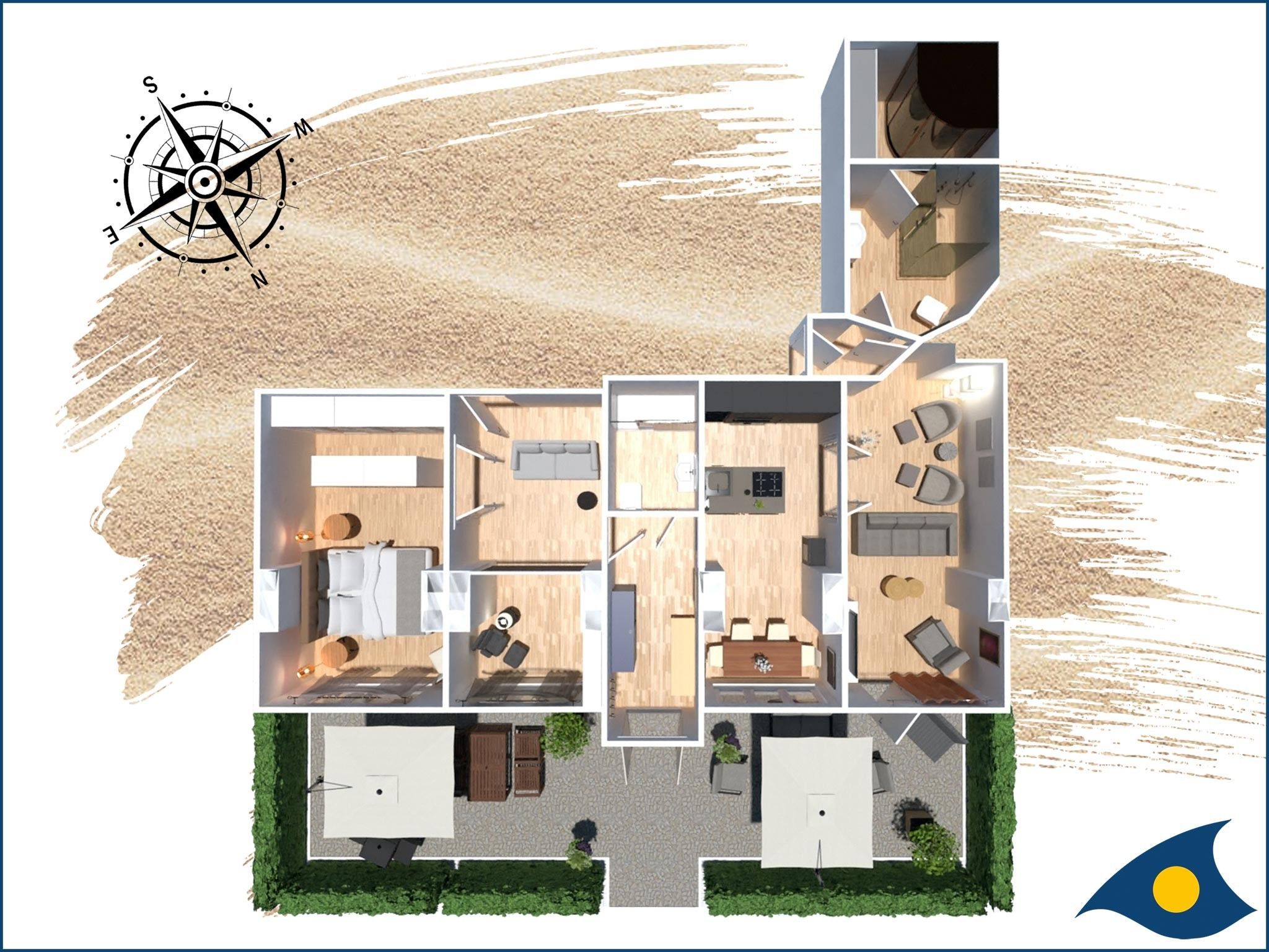 Der Strandzugang ist über eine Treppe direkt vor dem Haus erreichbar, sodass Sie den Tag am Meer ganz entspannt beginnen können. Die ruhige Lage sorgt für Erholung und Entspannung direkt am Meer.