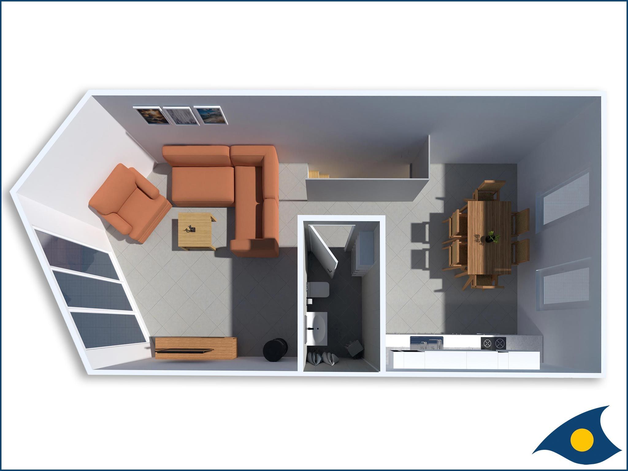 • Wohnbereich mit offener Küche und Schlaffunktionscouch