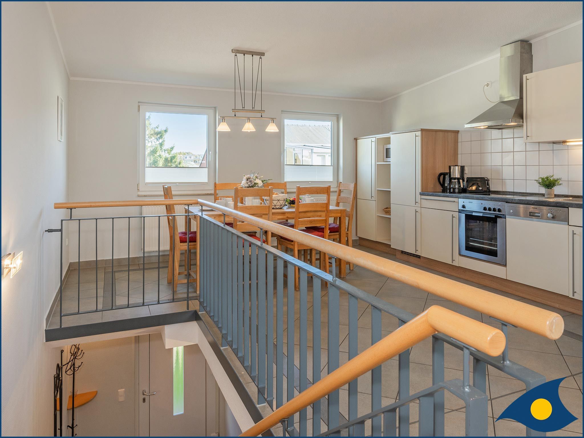 Das gemütliche Apartment 2 erstreckt sich über zwei Etagen und bietet viel Raum für einen entspannten Urlaub mit Familie oder Freunden. Die Wohnung ist modern eingerichtet und verbindet Komfort, Funktionalität und ein wohnliches Ambiente perfekt für erholsame Tage an der Ostsee.