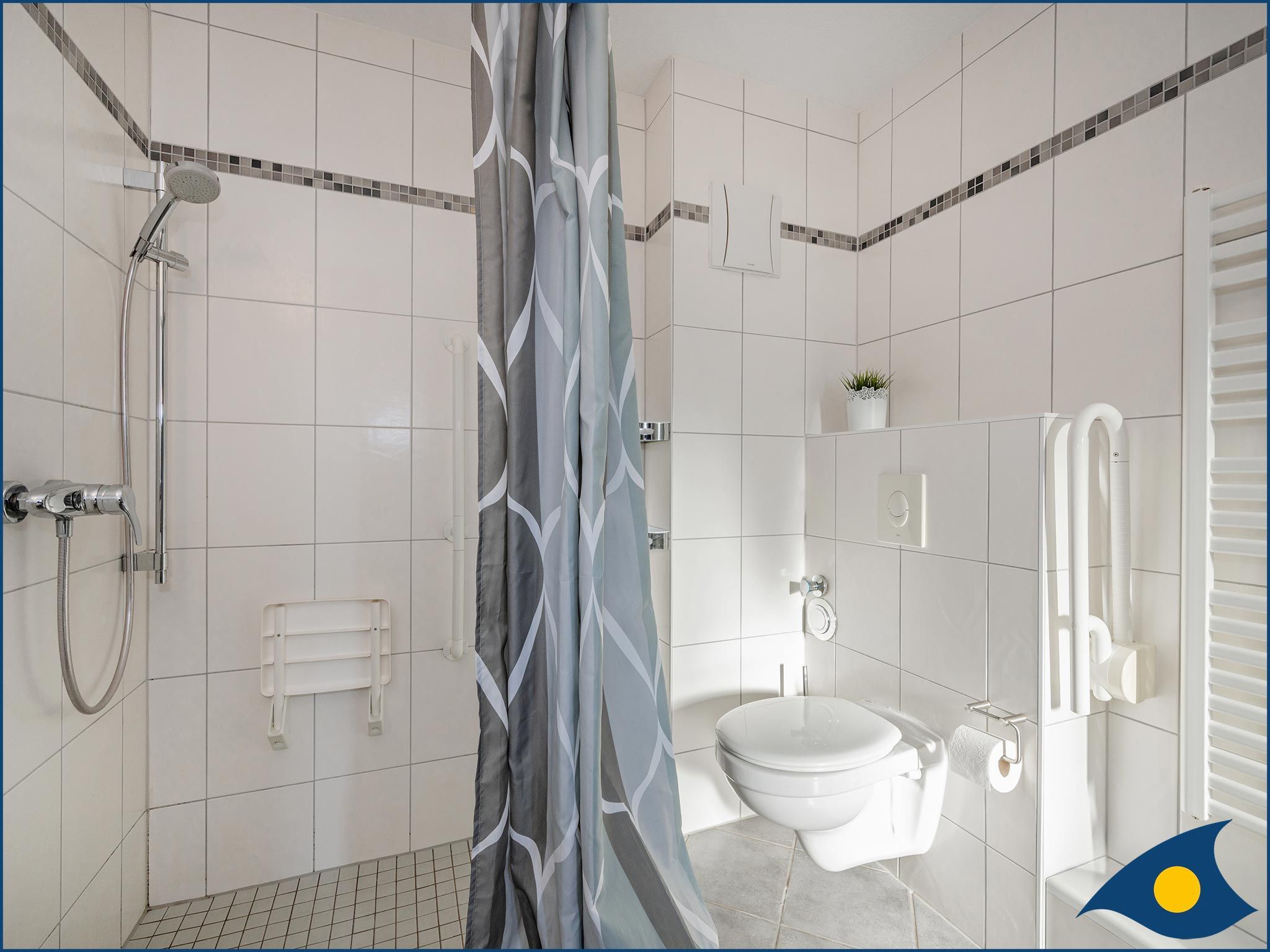• Bad mit ebenerdiger Dusche, Haltegriffen und rollstuhlfreundlicher Ausstattung